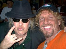 | Bardot pictured with fan and fellow guitarist Guy Koplitz..A.K.A. "The Ambush Guy" |