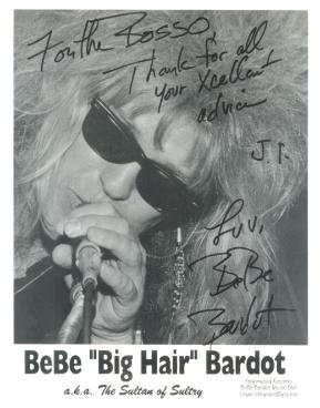| Lord Bennett's Restaurant is owned and operated by Rich Iverson..Located in the sea-side community of Bandon, Oregon. Lord Bennett's has been the home of Bebe "Big Hair" Bardot shows for nearly 20 years, and home to the BeBe & The Bugle Boy shows since 1999. Rich recently renamed/re-signed the Lounge in Beeb's honor BeBe "Big Hair" Bardot |